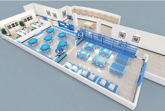 空間建設主要分為三個區(qū)域,分別是教學區(qū)、創(chuàng)造區(qū)、展示區(qū)。滿足不同能力階段的學生學習創(chuàng)造,同時將學生的優(yōu)秀作品進行展示。