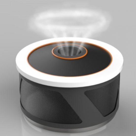 根據(jù)伯努利原理——流動的流體壓強降低,周邊壓強高的靜止空氣補充到壓強低的區(qū)域,由此形成渦流。這個渦流分布在圓孔周邊,成為環(huán)狀,并向前運動。環(huán)狀的空氣渦流將霧氣水珠限制在一個環(huán)狀區(qū)域內形成煙圈,當霧氣水珠隨著空氣快速通過一個圓孔時,由于圓孔出口周邊的空氣是靜止的,因此從圓孔中流出的空氣-水珠霧氣混合物會牽引靜止的周邊空氣,由此形成了一個從孔洞邊緣向外再轉向內旋轉的一個渦流。
