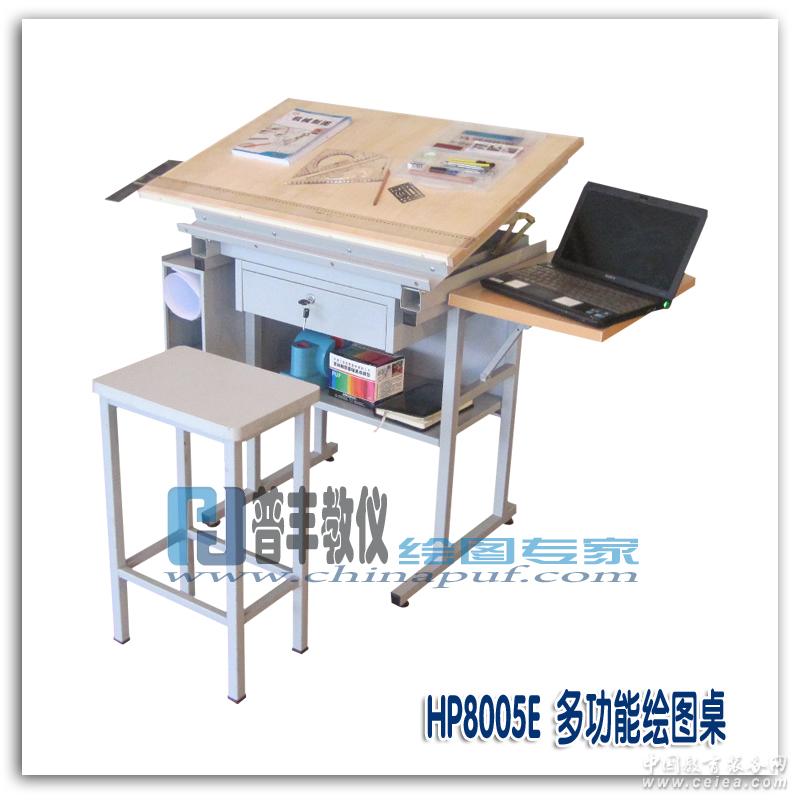 產(chǎn)品詳細介紹HP8005E 多功能繪圖桌 規(guī)格:700×550×800mm+副折桌面400×550mm (標配三聚氰胺桌面板+鋼制抽屜+鋼制紙筒+副折桌面)