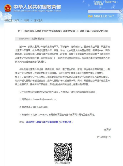 當(dāng)然,也正如意見(jiàn)征詢稿所言,防控近視需要政府、學(xué)校、醫(yī)療衛(wèi)生機(jī)構(gòu)、家庭、學(xué)生等各方面共同努力,需要全社會(huì)行動(dòng)起來(lái),共同呵護(hù)好孩子的眼睛。