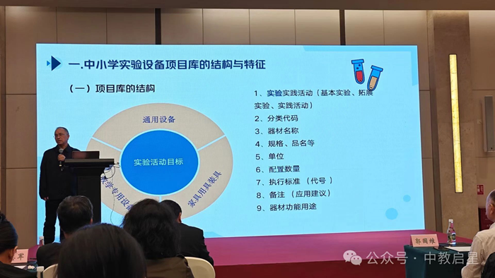 其中,南京市教育技術(shù)裝備中心鄧中材主任分享的題目為《“項(xiàng)目庫(kù)”牽引實(shí)驗(yàn)設(shè)備更新優(yōu)質(zhì)高效》。鄧主任以南京市裝備的實(shí)際案例,向大家介紹了中小學(xué)實(shí)驗(yàn)設(shè)備項(xiàng)目庫(kù)的結(jié)構(gòu)與特征、如何集約式推進(jìn)項(xiàng)目的落地、項(xiàng)目后評(píng)價(jià)及項(xiàng)目庫(kù)優(yōu)化。