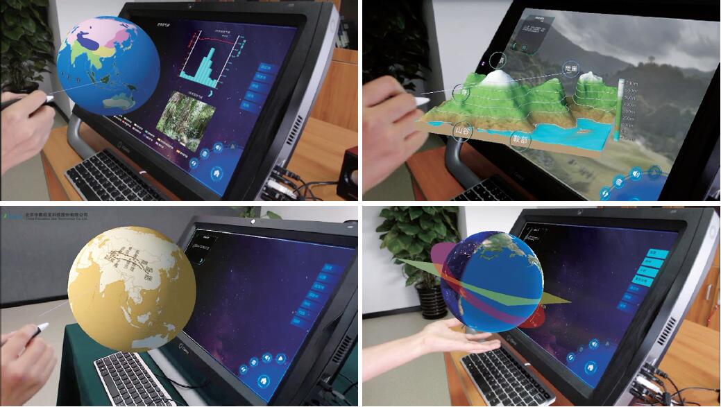 中教啟星“寰宇地理VR教學(xué)系統(tǒng)”依托桌面級(jí)便攜式一體化虛擬現(xiàn)實(shí)設(shè)備,深度集成VR、AR、MR等多種新興技術(shù),將地球和地圖、陸地和海洋、天氣與氣候、人口與宗教、國家和地區(qū)等中學(xué)地理課程的教學(xué)難點(diǎn)直觀、全景、高清地呈現(xiàn)出來,讓學(xué)生在游戲和探索中深度吸收轉(zhuǎn)化學(xué)科知識(shí)。整套系統(tǒng)簡(jiǎn)易輕便、無眩暈感,兼顧人機(jī)交互、師生教學(xué)和生生互動(dòng),徹底打破虛擬和現(xiàn)實(shí)的邊界,是VR軟硬件技術(shù)在地理學(xué)科教育的創(chuàng)新性應(yīng)用,更是一間便攜的學(xué)科實(shí)驗(yàn)室、一座移動(dòng)的科技館。