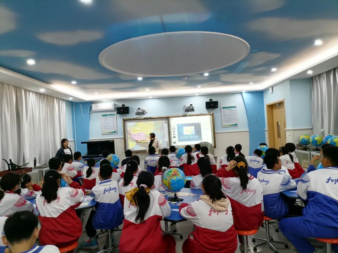 隨后班級同學(xué)分成學(xué)習(xí)小組,每組同學(xué)使用不同設(shè)備完成對應(yīng)知識點(diǎn)的學(xué)習(xí)。同學(xué)們在數(shù)字模型中懂得了冷鋒暖鋒交匯的情況;在天文演示儀里看到了四季變化的星空和星座。