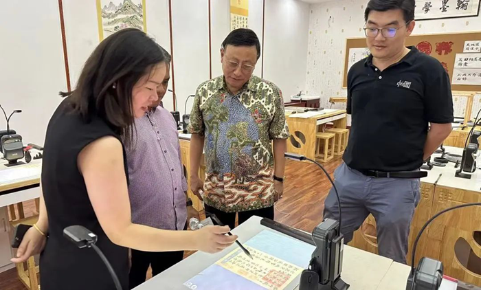 數(shù)字化美術(shù)教室和數(shù)字化書法教室是羿飛教育的另一大亮點(diǎn)。通過先進(jìn)的數(shù)字化技術(shù),這些教室能夠?yàn)閷W(xué)生提供更加生動(dòng)、直觀的藝術(shù)教育體驗(yàn)。Mr.Dedy Rochimat在參觀過程中,對(duì)這些設(shè)備如何幫助學(xué)生更好地理解和掌握藝術(shù)技巧表示了興趣。
