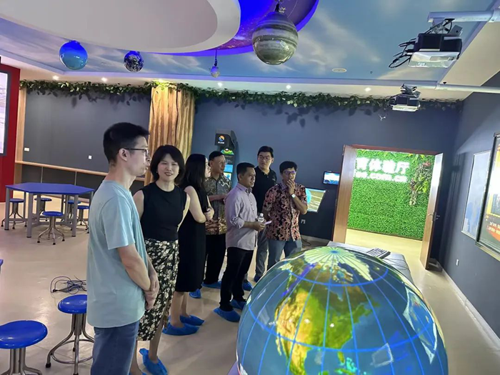 此外,Mr.Dedy Rochimat還參觀了地理歷史教室,這里利用先進(jìn)的教學(xué)設(shè)備和豐富的教學(xué)資源,為學(xué)生提供了一個(gè)了解世界、探索歷史的空間。他對(duì)于教室中展示的“一帶一路”相關(guān)教學(xué)內(nèi)容特別感興趣,認(rèn)為這將有助于印尼學(xué)生更好地理解中國以及“一帶一路”倡議的深遠(yuǎn)意義。