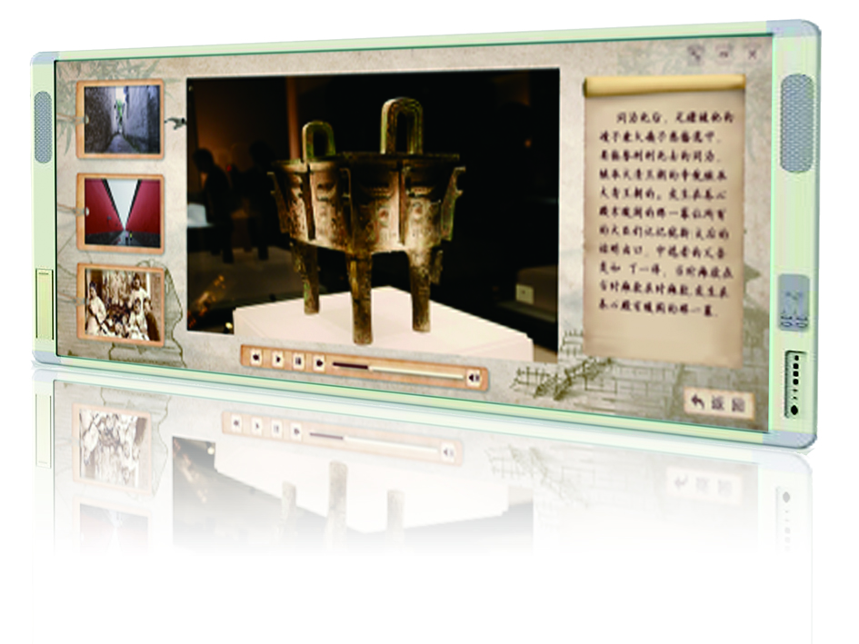 數(shù)字歷史沿革系統(tǒng)采用了新型的激光投影、紅外集成觸控技術(shù)。它選取了中國及世界歷史中典型的人物、事件等素材,將這些素材以時間軸順序展開,與教學(xué)課件有機結(jié)合。歷史沿革系統(tǒng)以人類社會發(fā)展的趨勢為視角、以重大歷史政治、經(jīng)濟、科學(xué)文化事件為架構(gòu)和主體,具有圖、文、聲、視功能,四位一體地展示中外歷史發(fā)展的文明。