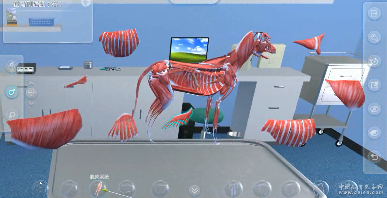 國泰安犬VR虛擬解剖實(shí)訓(xùn)系統(tǒng)是一款以教學(xué)為主的解剖軟件,不僅展現(xiàn)了課堂上新的教學(xué)形式,也讓學(xué)生對解剖學(xué)有了全新的認(rèn)識和體驗(yàn)。學(xué)生通過帶上追蹤眼鏡。利用獨(dú)特的虛擬交互筆進(jìn)行交互操作,同時該交互效果可通過高清攝像頭和2D顯示設(shè)備或者投影儀來分享。該特色不但打破了傳統(tǒng)課本知識點(diǎn)及考點(diǎn)傳授方式,還讓學(xué)生更加直觀的感受解剖學(xué)的微觀世界。