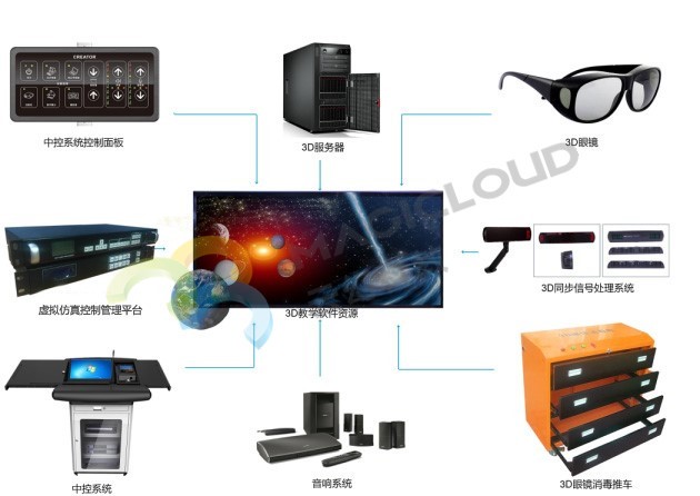 利用多媒體影視顯示設(shè)備來顯示3D/AR視頻圖像及媒體信息,以豐富老師的教學(xué)內(nèi)容;
