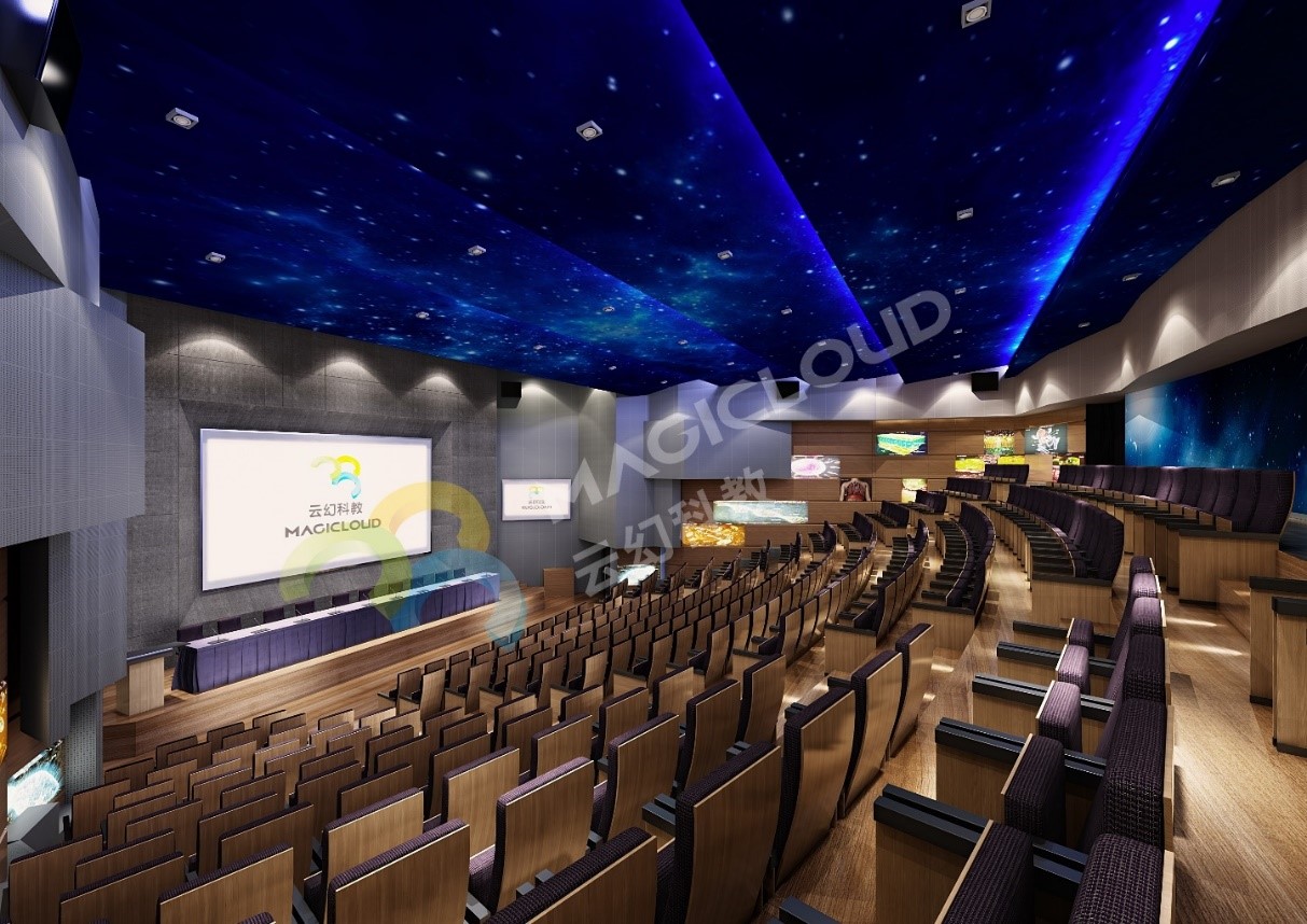 多功能報(bào)告廳3D智能教學(xué)功能綜合應(yīng)用了現(xiàn)代多媒體技術(shù),結(jié)合3D虛擬仿真技術(shù),營造出一個(gè)高精度大屏幕演示、高保真音質(zhì)、3D效果呼之欲出的現(xiàn)代化體驗(yàn)式輔助教學(xué)環(huán)境。它使3D優(yōu)質(zhì)教學(xué)資源得到了充分地發(fā)揮和利用,豐富了教學(xué)手段,擴(kuò)充了教學(xué)資源,減輕了教師講課的勞動(dòng)強(qiáng)度;直觀沉浸式的教學(xué)形式,使學(xué)生更易于領(lǐng)會(huì)接受授課內(nèi)容,加深了學(xué)生印象,促進(jìn)學(xué)生理解能力和記憶力,提高了教學(xué)質(zhì)量。