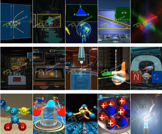 化學(xué):利用3D教學(xué)視頻互動(dòng)操控,將每個(gè)獨(dú)立的元素,化學(xué)分子反應(yīng)及運(yùn)動(dòng),演示不同元素如何發(fā)生反應(yīng)的過程原理;