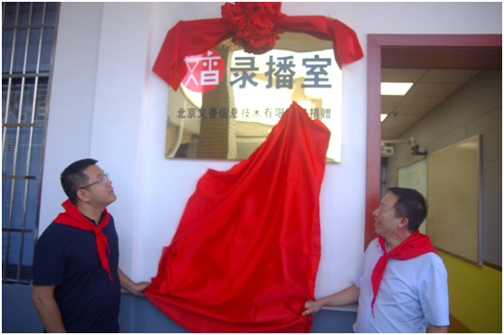 儀式過后,朱玉榮董事長(zhǎng)與教育體育局局長(zhǎng)龍平為文香錄播教室揭牌。