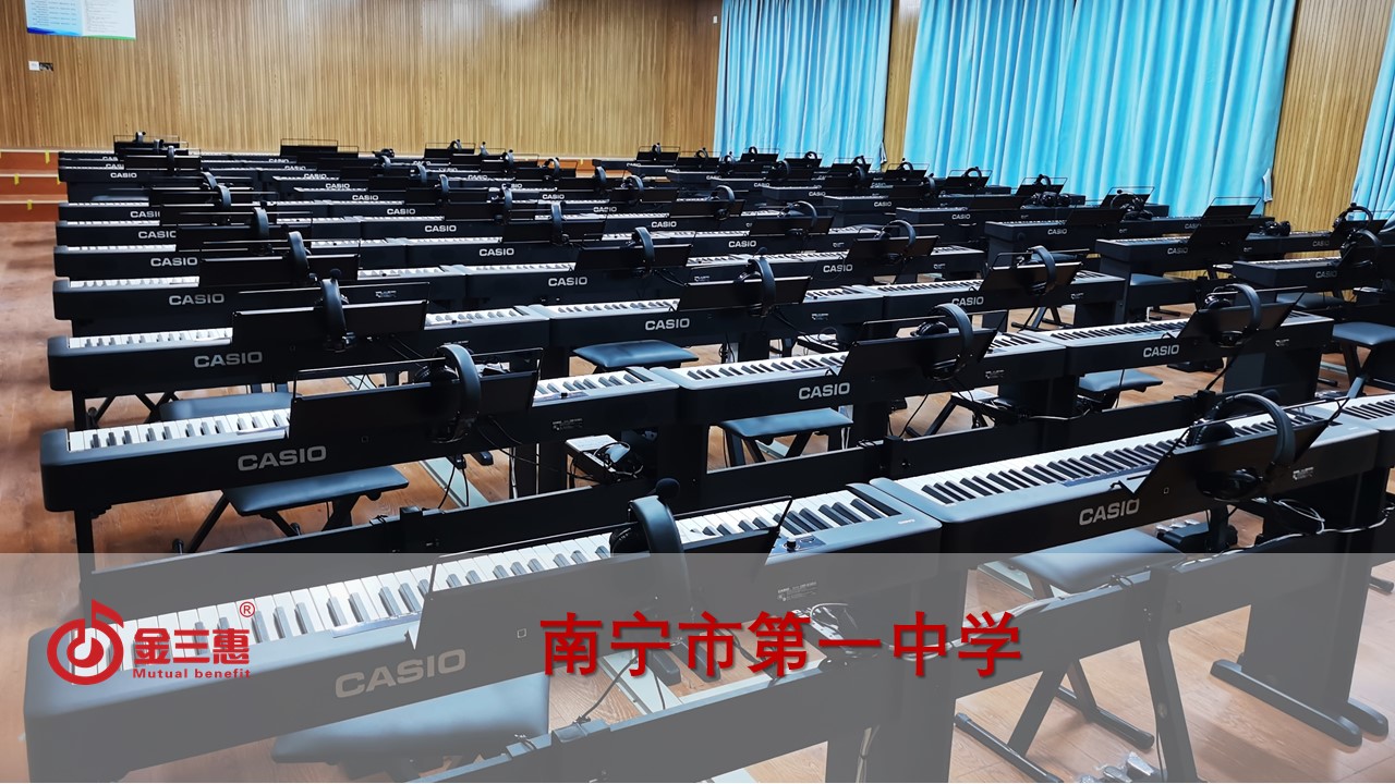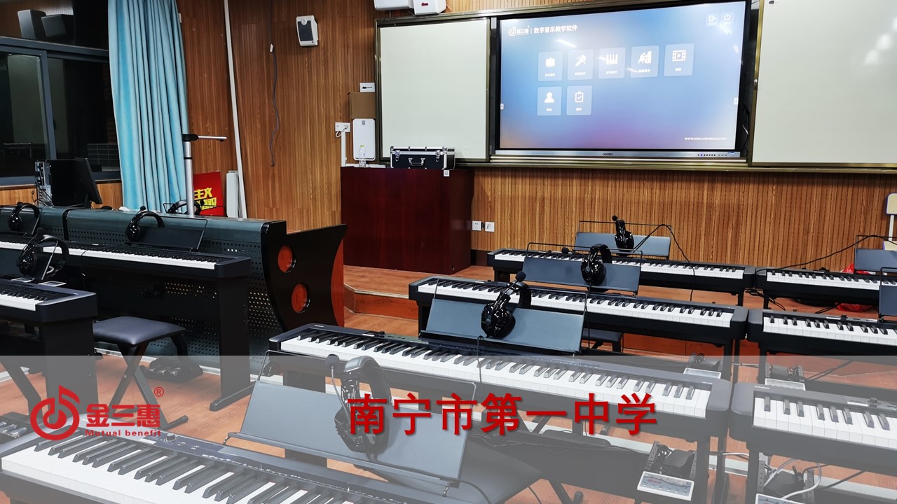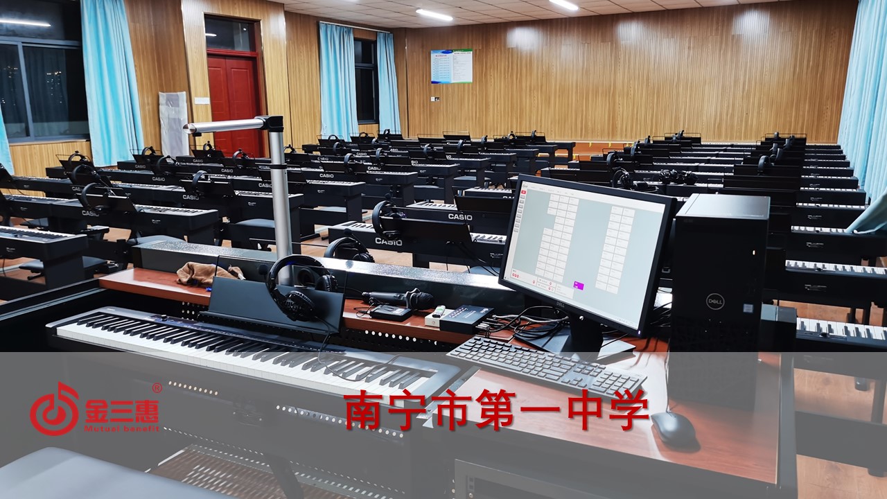 南寧市第一中學的電鋼琴教室正式開始使用,本校數(shù)字化音樂教室由北京金三惠科技有限公司負責提供、安裝、培訓。