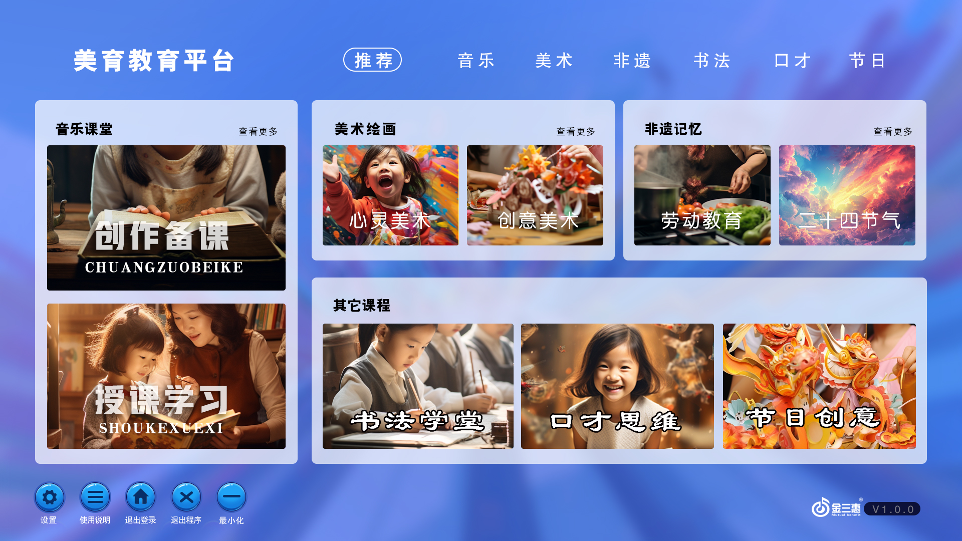 美育教育平臺(tái)專注于美育教育,積極響應(yīng)國(guó)家政策,立足當(dāng)下素質(zhì)教育需求,充分利用現(xiàn)代信息化手段,打造數(shù)字化、可視化為一體的智能數(shù)字美育教育平臺(tái)。