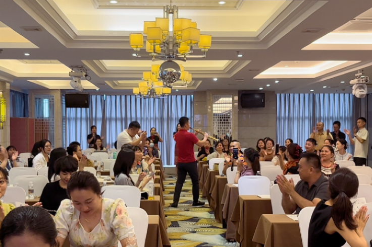 劉美英音樂名師工作室表演了工作室編創(chuàng)的歌曲《迎客歌》,富有了濃郁的民族風(fēng)味,將培訓(xùn)場面推向高潮。