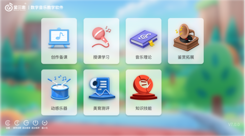 包含創(chuàng)作備課、授課學(xué)習(xí)、音樂理論、鑒賞拓展、動感樂器、美育測評(可以配置)和知識拓展七大功能模塊。