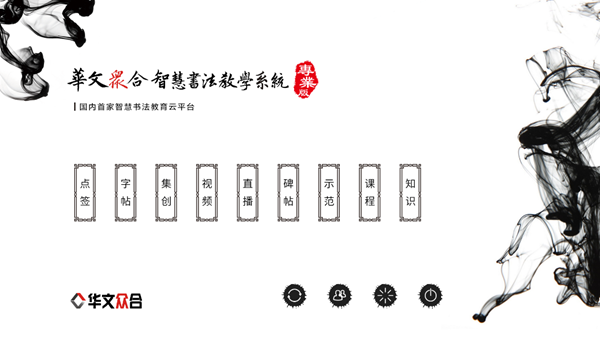 系統(tǒng)界面如下圖所示,系統(tǒng)包含點(diǎn)簽、字帖、集創(chuàng)、視頻、直播、碑帖、示范、課程、知識(shí)欄目。