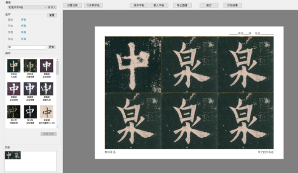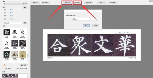 (9)排版好的字帖可以保存為模板,下次上課時(shí)點(diǎn)擊載入字帖,可直接進(jìn)行練習(xí);