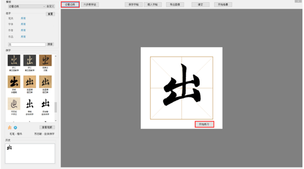 (7)可選擇“六步教學(xué)法”,在字庫里選擇字帖,點(diǎn)擊開始練習(xí);