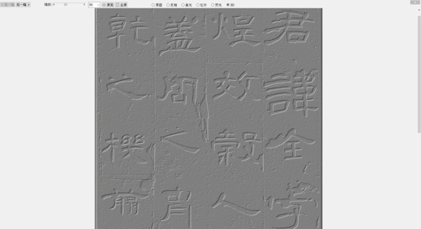 (5)點(diǎn)擊上方模式可切換不同的顯示方式,示例:點(diǎn)擊上方的“3D”選項(xiàng),碑帖顯示原碑效果;