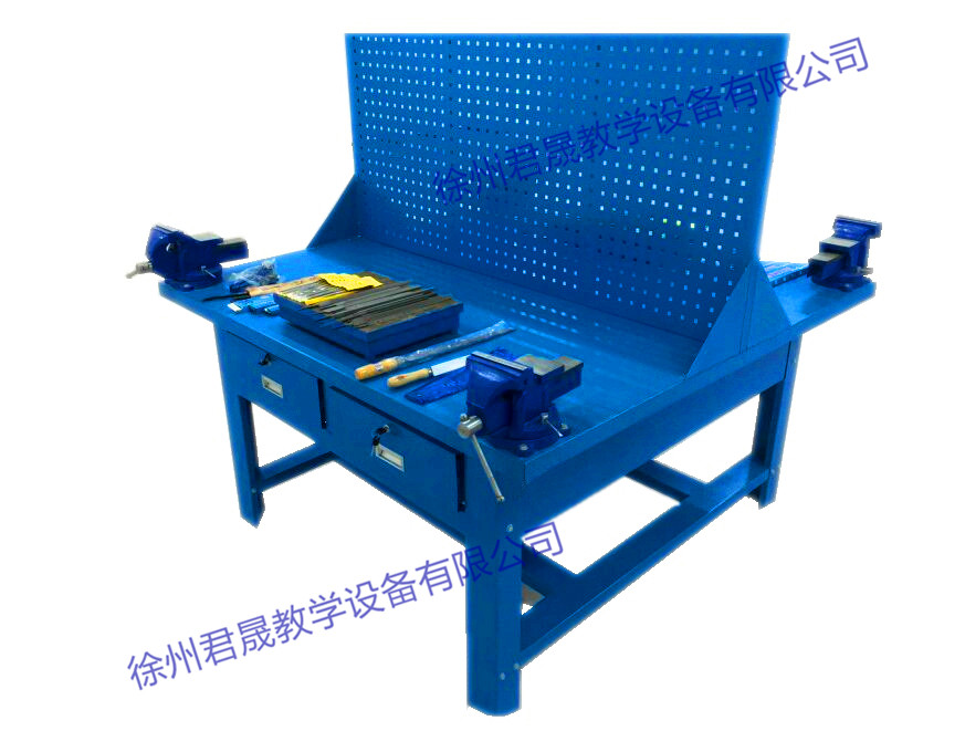 產(chǎn)品詳細(xì)介紹概述: 本公司生產(chǎn)鉗工實(shí)驗(yàn)室設(shè)備根據(jù)教學(xué)要求與多家工廠共同開(kāi)發(fā)生產(chǎn),該產(chǎn)品配備的鉗工工具通用化,標(biāo)準(zhǔn)化和專用化,可提高學(xué)生的操作技術(shù)和動(dòng)手能力。鉗工大多是在鉗工臺(tái)上用手工工具操作,對(duì)工件進(jìn)行加工。手工操作的特點(diǎn)是技術(shù)性強(qiáng),加工質(zhì)量的好壞主要取決于操作者技術(shù)水平的高低,它的工作范圍較廣,具有萬(wàn)能性和靈活性的優(yōu)勢(shì)且不受設(shè)備、場(chǎng)地等條件的限制,因此凡是采用機(jī)械加工方法不太適宜或難以進(jìn)行機(jī)械加工的場(chǎng)合,通常由鉗工來(lái)完成,尤其是機(jī)械產(chǎn)品的裝配、調(diào)試、安裝和維修等更需要鉗工,所以說(shuō)鉗工不僅是機(jī)械制造工廠中應(yīng)用最廣泛的工種之一,因此鉗工實(shí)驗(yàn)室設(shè)備也是各大院校,技校不可缺少的實(shí)訓(xùn)教學(xué)產(chǎn)品。 鉗工:鉗工大多是用手工工具并經(jīng)常在臺(tái)虎鉗上進(jìn)行手工操作的一個(gè)工種。 鉗工的主要任務(wù)---- 加工零件:一些采用機(jī)械方法不適宜或不能解決的加工,都可由鉗工來(lái)完成。如:零件加工過(guò)程中的劃線,精密加工(如,刮削 挫削樣板個(gè)制作模具等等)以及檢驗(yàn)及修配等。 裝配: 把零件按機(jī)械設(shè)備的裝配技術(shù)要求進(jìn)行組件,部件裝配合總裝配,并經(jīng)過(guò)調(diào)整,檢驗(yàn)合試車等,使之成為合格的機(jī)械設(shè)備。 設(shè)備維修:當(dāng)機(jī)械在使用過(guò)程中產(chǎn)生故障,出現(xiàn)損壞或長(zhǎng)期使用后精度降低,影響使用時(shí),也要通過(guò)鉗工進(jìn)行維護(hù)合修理。 工具的制造和修理:制造和修理各種工具,卡具,量具,模具和各種專業(yè)設(shè)備。 鉗工各項(xiàng)操作技能---- 劃線,鏨削,鋸削,銼削,鉆孔,擴(kuò)孔,锪孔,鉸孔,攻螺紋,套螺紋,矯正和彎形,鉚接,刮削,研磨,機(jī)器裝配調(diào)試,設(shè)備維修,測(cè)量和簡(jiǎn)單的熱處理。 鉗工的主要工具---- 鉗工主要是以 銼刀 鉆 鉸刀 老虎鉗 臺(tái)虎鉗 車床 銑床 磨床為主的工具進(jìn)行裝配和維修的技術(shù)工人 。 鉗工的種類---- 鉗工(普通鉗工):對(duì)零件進(jìn)行裝配,修整,加工的人員。 機(jī)修鉗工:主要從事各種機(jī)械設(shè)備的維修修理工作。 工具鉗工:主要從事工具,模具,刀具的制造和修理 。 鉗工臺(tái)主要參數(shù): 鉗工臺(tái)的規(guī)格:1500×1500×1500mm(桌面高800+防護(hù)網(wǎng)700)。 防護(hù)網(wǎng)規(guī)格1500×700×30沖孔金屬鋼板,帶加強(qiáng)筋。 臺(tái)面采用雙面結(jié)構(gòu),即4個(gè)操作工位共用一個(gè)平臺(tái)。以節(jié)約成本和空間。 臺(tái)面材料采用50毫米刨花板(或松木)覆2毫米厚鋼板(表面應(yīng)防銹處理)。 桌架立柱采用2.0厚鋼板折型,規(guī)格100×80×750 桌架橫梁及加強(qiáng)梁:1.5厚鋼板折型規(guī)格100×40×1.5 抽屜采用1.0mm鋼板,桌面鐵皮全部包起來(lái) .抽T(mén)每個(gè)可以承重40KG. 鉗工實(shí)驗(yàn)室(一張桌4座/組)每組詳細(xì)配置如下: 可以完成常用工具的認(rèn)識(shí)和使用,錘、鋸、銼、鑿、劃線、裝配、調(diào)試、安裝、維修等教學(xué)工具。 序號(hào) 名 稱 規(guī) 格 單位 數(shù)量 1 鉗工桌 150×150×80 張 1 2 臺(tái)虎鉗 5寸 臺(tái) 4 3 鋼鋸架