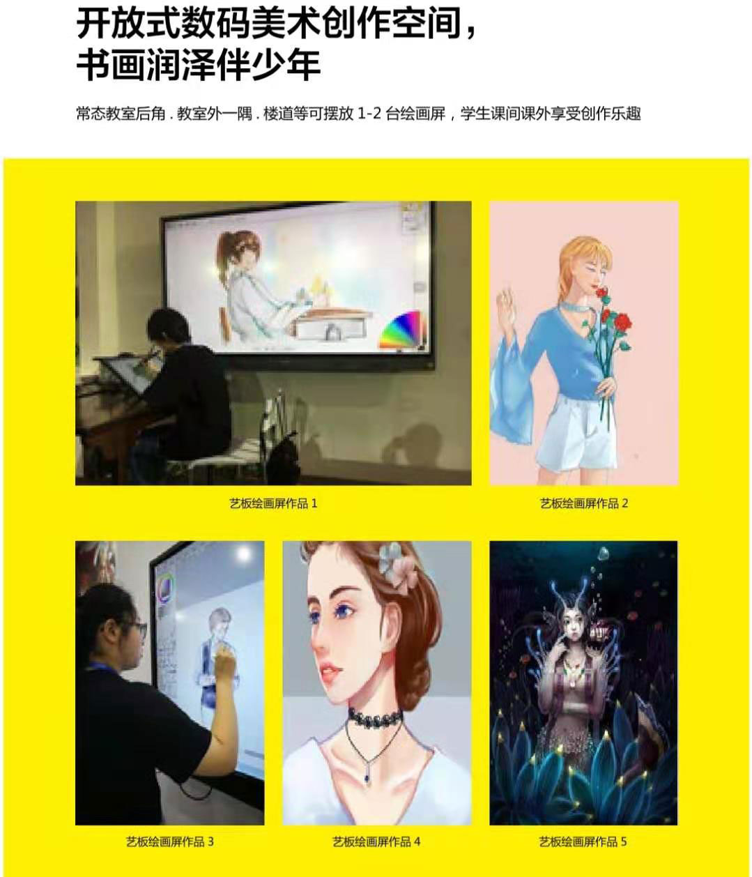 兼具傳統(tǒng)美術(shù)和數(shù)字美術(shù)的優(yōu)勢,非常適合學生和老師的互動,能夠啟發(fā)孩子們觀察力,開發(fā)力,想象力,把孩子的本能開發(fā)出來。