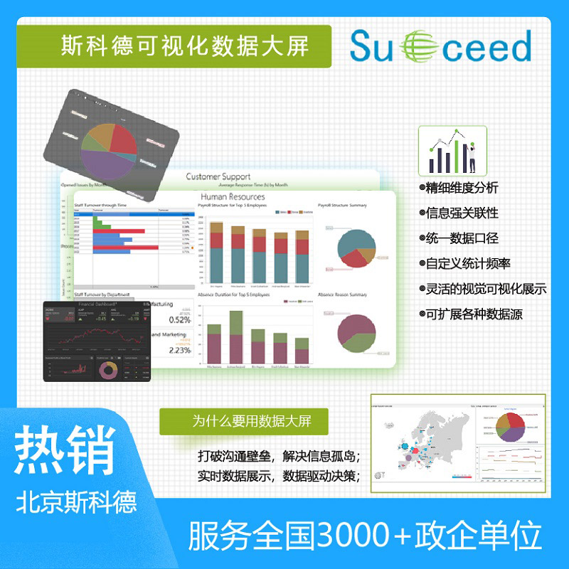 產(chǎn)品詳細介紹數(shù)據(jù)大屏也叫全動態(tài)數(shù)據(jù)展示系統(tǒng),是后臺系統(tǒng)的綜合展示,主要呈現(xiàn)業(yè)務(wù)相關(guān)的數(shù)據(jù)和圖表。實時性和多維度分析方便動態(tài)了解業(yè)務(wù)狀況,并能夠?qū)?shù)據(jù)變化做出業(yè)務(wù)決策。 根據(jù)不同的角色可以定制不同的數(shù)據(jù)內(nèi)容,如面向生產(chǎn)結(jié)果的戰(zhàn)略數(shù)據(jù)看板,面向生產(chǎn)過程的業(yè)務(wù)看板以及面向業(yè)務(wù)細節(jié)的一線業(yè)務(wù)看板。