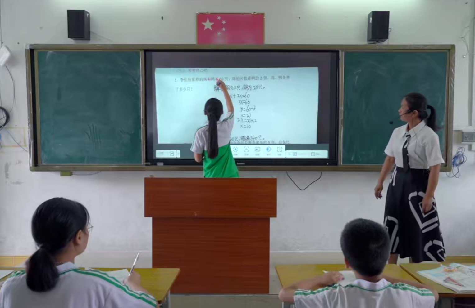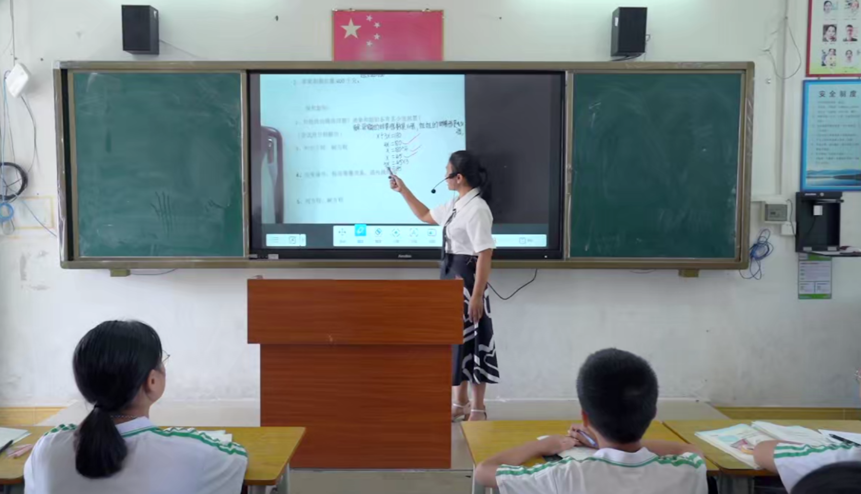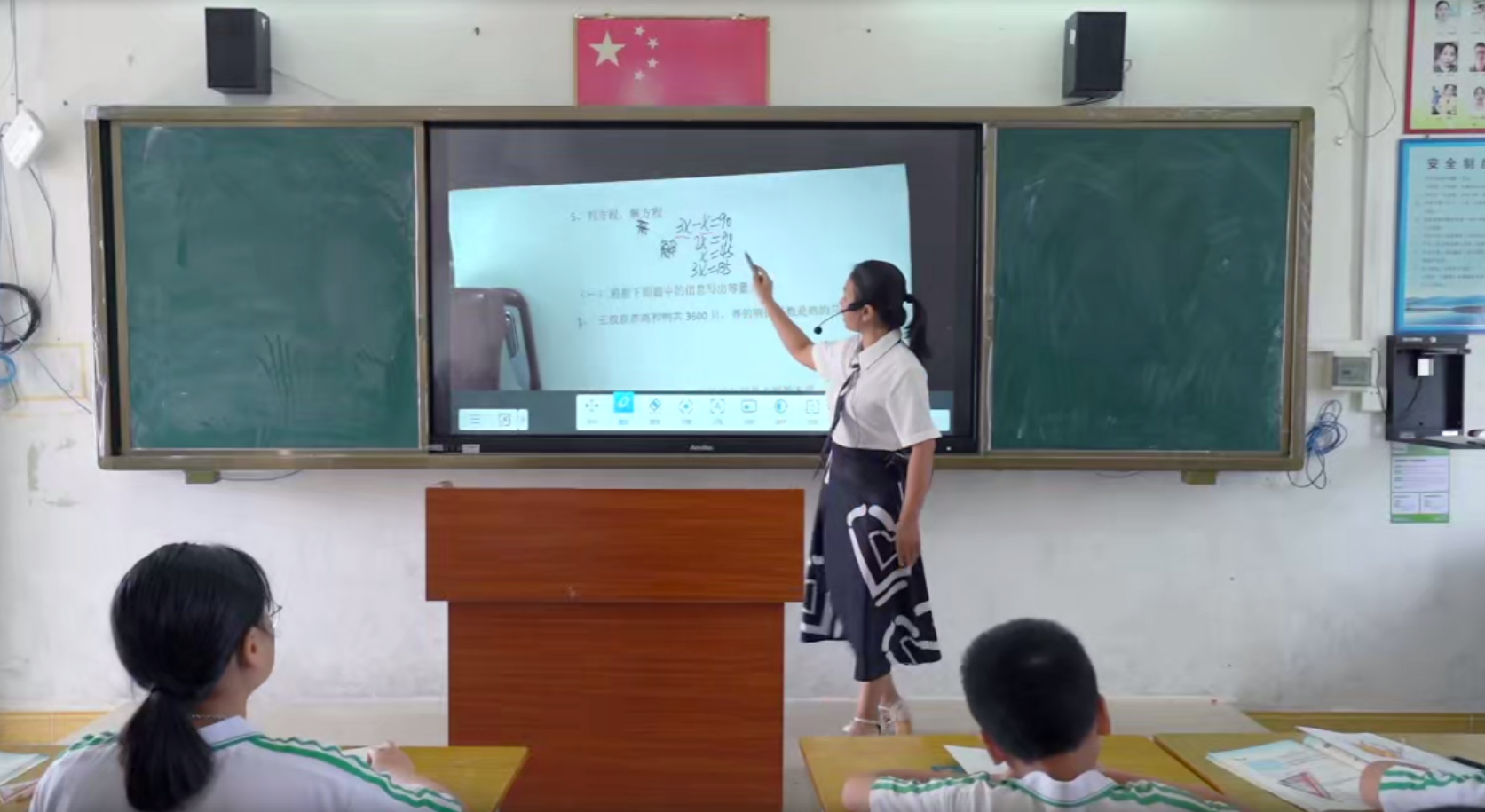 新學(xué)期已經(jīng)開啟,沉寂了兩個(gè)月的校園恢復(fù)了往日的生機(jī)。在化州市南盛中心小學(xué)的教室里,數(shù)學(xué)老師郭卡玲正在運(yùn)用安道智能交互教學(xué)一體機(jī)為學(xué)生們上課。
