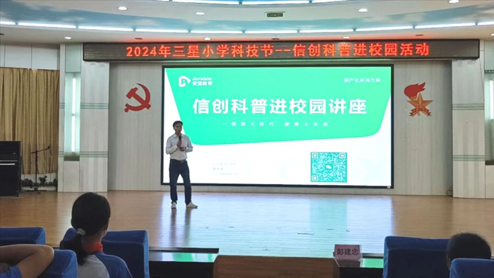 在開幕式現場,安道教育售前支持部總監(jiān)黎成勇發(fā)表題為《信創(chuàng)大時代 · 教育大未來》的信創(chuàng)科普進校園主題演講,他分別從實施背景、政策解讀、信創(chuàng)優(yōu)勢等多個維度闡述信創(chuàng)大時代的背景下,安道教育提供的信創(chuàng)教室解決方案及成功案例。從宏觀到微觀闡述安道教育是如何遵循國家教育政策方向,不斷推動智慧教育裝備國產化。