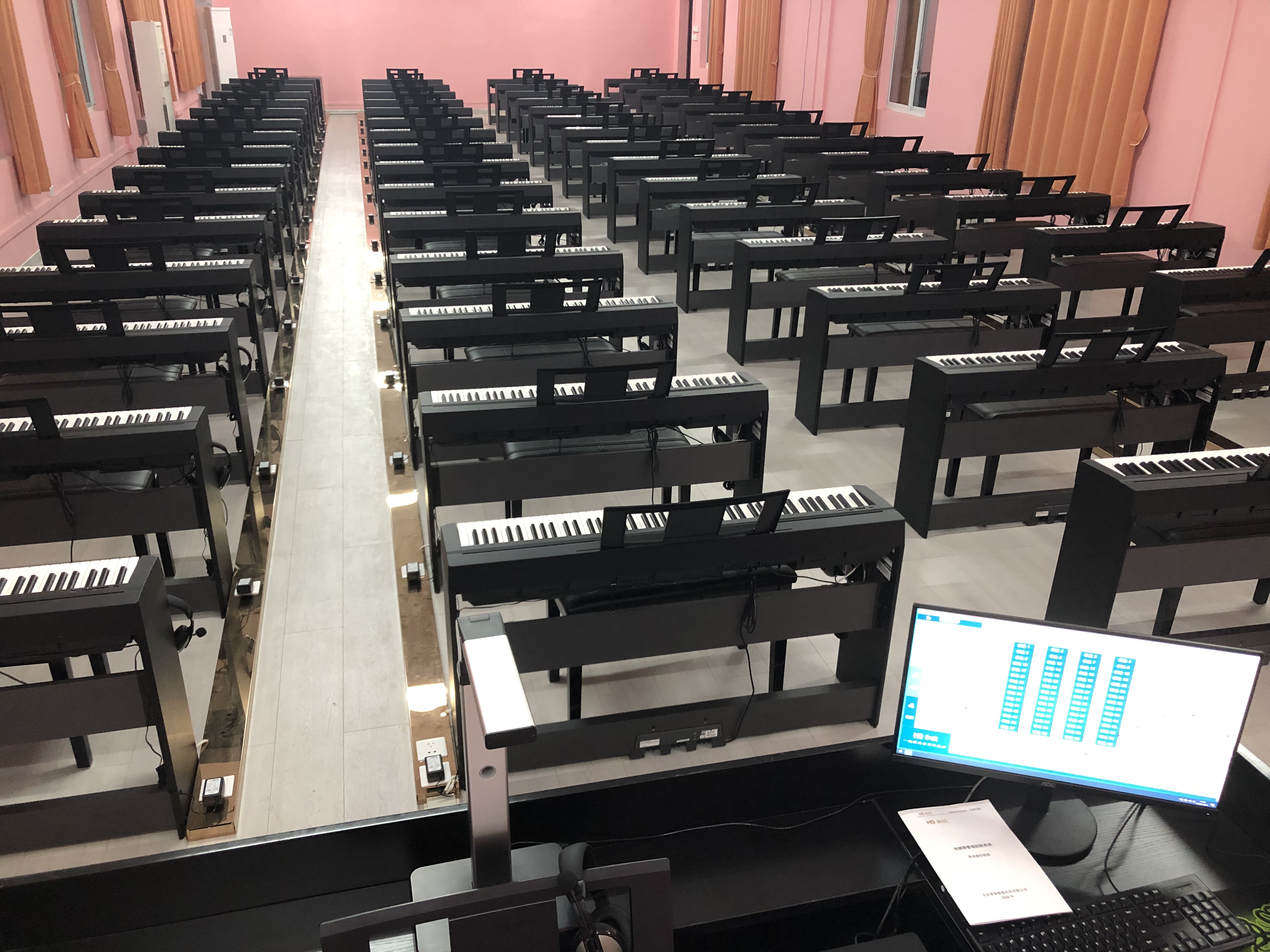 數(shù)碼鋼琴實(shí)訓(xùn)室可實(shí)現(xiàn)鍵盤樂大班授課,學(xué)生間彈琴相互不干擾,教師可以監(jiān)聽某個(gè)或某幾個(gè)學(xué)生彈琴,并與其進(jìn)行語音通話,可指定任意一位學(xué)生進(jìn)行全班示范,可將學(xué)生組成不同的小組進(jìn)行合奏。超靜音,無延時(shí),無串音現(xiàn)象