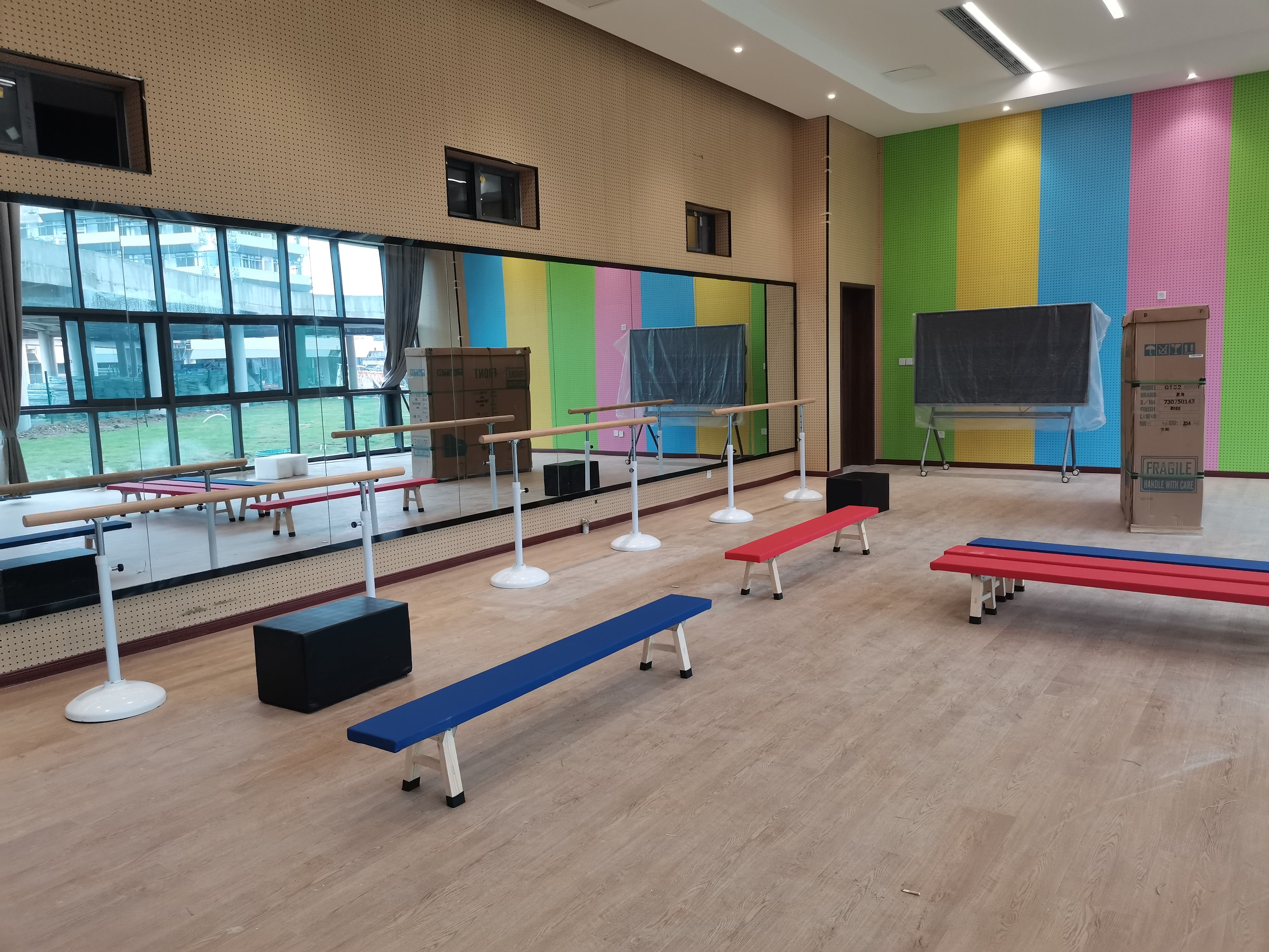 舞蹈教室是藝術(shù)教學(xué)中進(jìn)行形體訓(xùn)練、舞蹈排練的場(chǎng)所,是學(xué)生學(xué)習(xí)舞蹈和文化素養(yǎng)的地方。舞蹈教室教學(xué)設(shè)備是給學(xué)生提供一個(gè)安全、舒適、適宜的學(xué)習(xí)環(huán)境。基本設(shè)備配備有音箱、鏡子、空調(diào)、地板、更衣室等;酒鞑呐鋫溆形璧赴褩U、舞蹈墊、練功球、拉力帶、壓腿磚等。