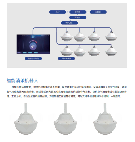 產(chǎn)品詳細(xì)介紹根據(jù)不同場(chǎng)景需求,提供多種智能化消殺方案,實(shí)現(xiàn)精準(zhǔn)化自動(dòng)化操作體驗(yàn)。全自動(dòng)靜音無(wú)感空氣潔凈、納米級(jí)氣溶膠高效無(wú)死角消毒,通過(guò)物聯(lián)網(wǎng)大數(shù)據(jù)對(duì)病毒和細(xì)菌的消殺操作與控制,提供空氣消毒全過(guò)程數(shù)據(jù)記錄存儲(chǔ)、匯總分析,自動(dòng)生成客戶所需臺(tái)賬,方便防疫工作監(jiān)管與溯源,同時(shí)支持手機(jī)遠(yuǎn)程操作與控制,一鍵啟動(dòng)。 |