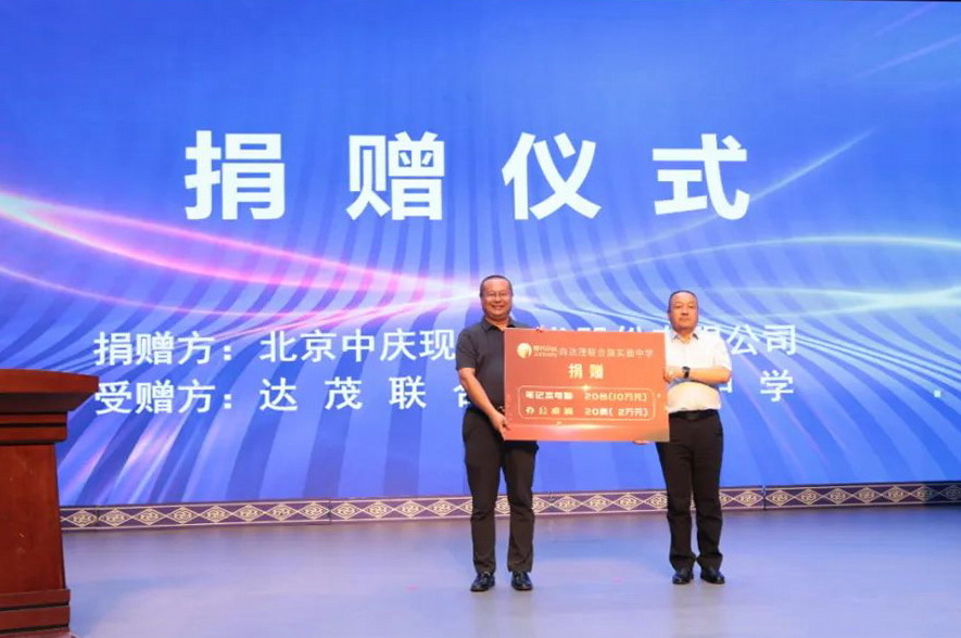 9月1日,2023-2024年度包頭市城鄉(xiāng)學(xué)校結(jié)對(duì)共建簽約儀式暨“組團(tuán)式”支教幫扶出征儀式在達(dá)茂旗融媒體中心舉行,包頭市昆都侖區(qū)教育局和達(dá)茂聯(lián)合旗教育局雙方代表簽訂了《城鄉(xiāng)學(xué)校結(jié)對(duì)共建框架協(xié)議》,并啟動(dòng)支教幫扶組團(tuán)授旗出征儀式。會(huì)上,現(xiàn)代中慶向達(dá)茂旗捐贈(zèng)筆記本電腦和辦公桌椅,成為幫扶達(dá)茂旗團(tuán)隊(duì)的重要一員。