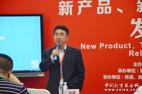 中國教育裝備行業(yè)協(xié)會常務(wù)副會長李興植主持發(fā)布會
