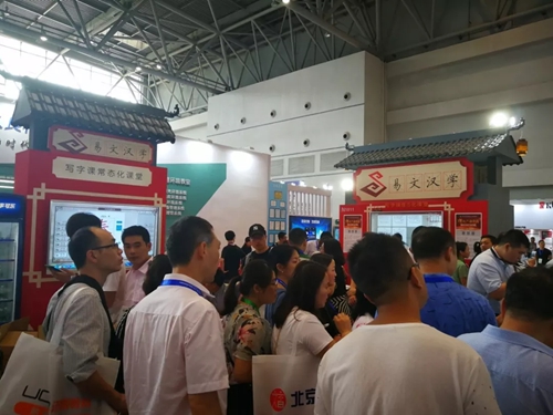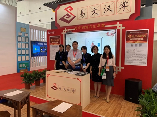 在這屆展會上北京易文漢學科技有限公司帶著最新課程資源和授課系統(tǒng)參展,為大家?guī)砹藵h字學習空間新方案。在專業(yè)教室里,學生每周練習測試,教師匯總漢字學習成果,通過數(shù)據(jù)報告直觀了解學生學情。在日常課堂中,漢字教學資源隨時隨地調(diào)用,教師可針對日常教學需要或者學生易錯之處,進行靶向性講解,為學生打造全方位的漢字學習空間。
