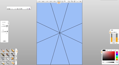6.新建一個(gè)圖層,使用工具菜單下的直線工具畫出相交的4條直線,繪制之前可適當(dāng)將直線加粗。