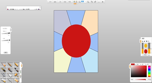 8.在新建的透明圖層中使用工具菜單下的橢圓工具繪制一個(gè)紅色的橢圓。