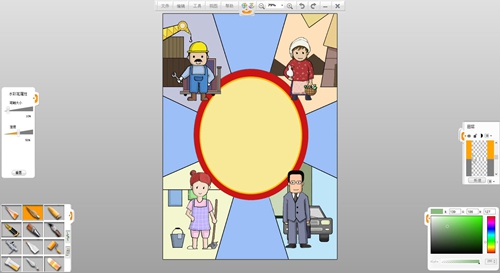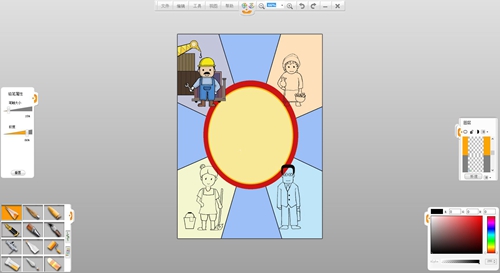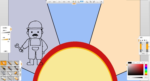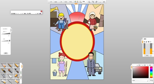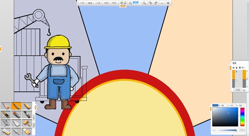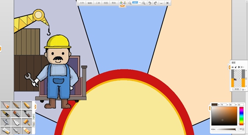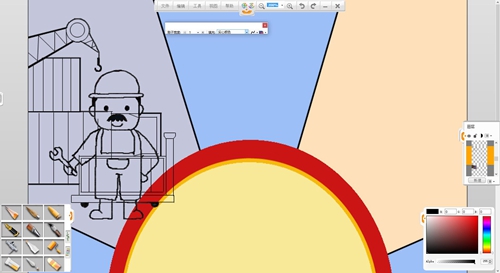 11.使用鉛筆工具開始繪制人物線稿。先在左上方區(qū)域繪制一個(gè)工人形象。