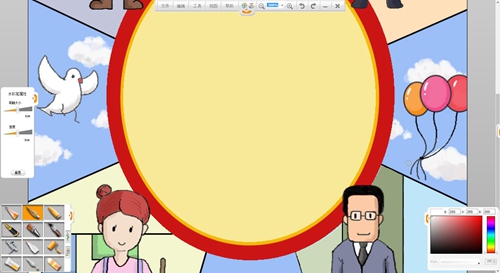21.使用魔術(shù)棒工具選定后為鴿子上色。使用水彩筆工具簡(jiǎn)單涂抹即可繪制云的效果。