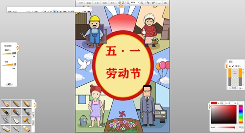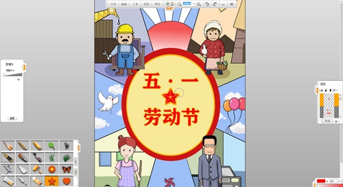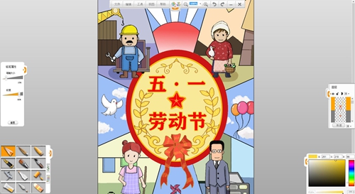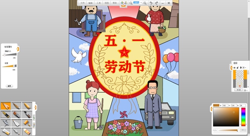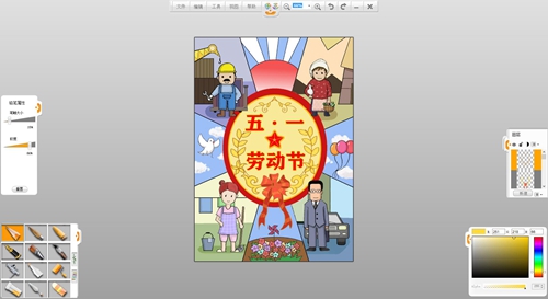 1.現(xiàn)在來(lái)創(chuàng)作一幅“五一節(jié)”的作品。