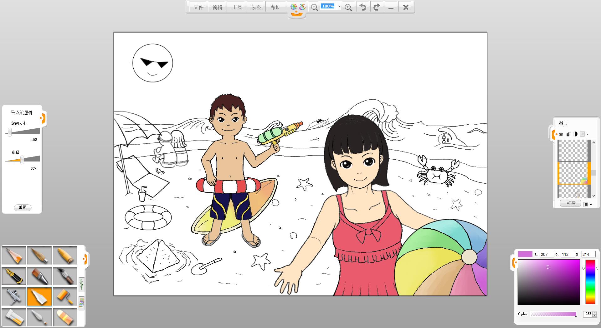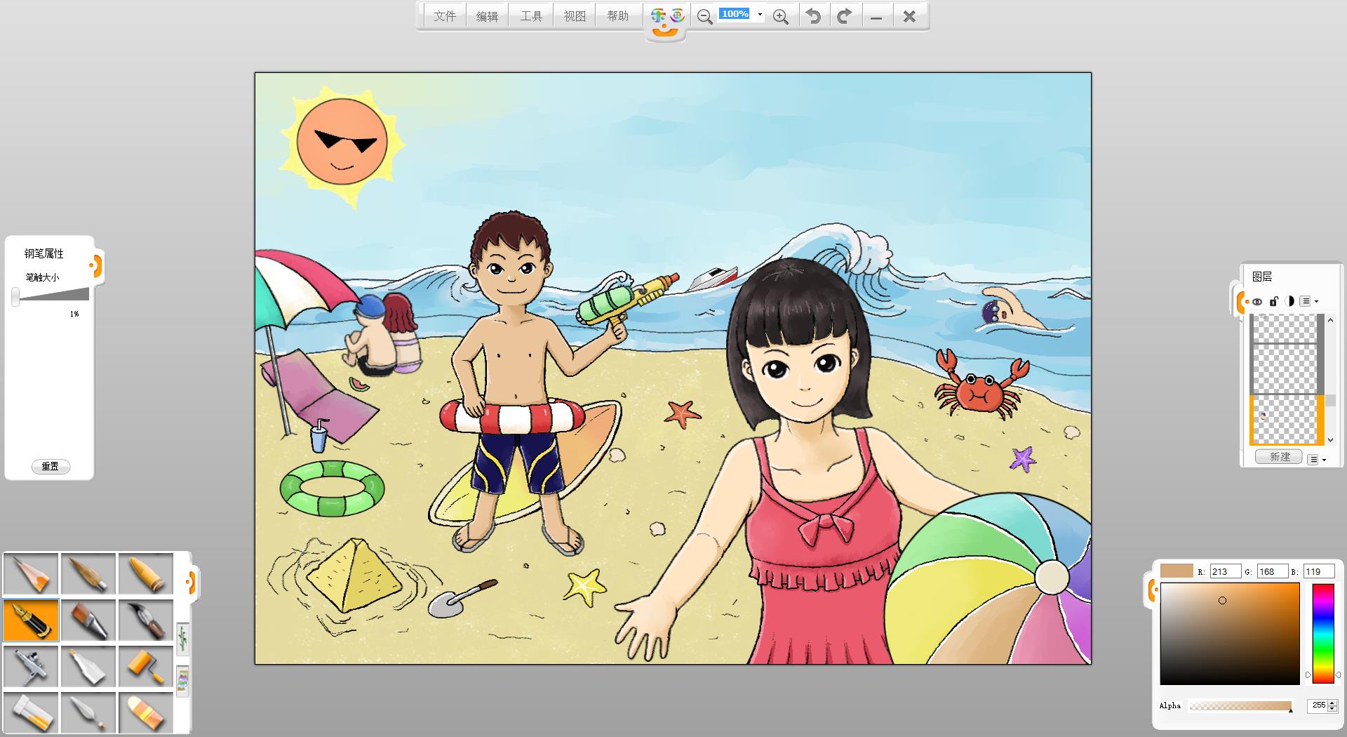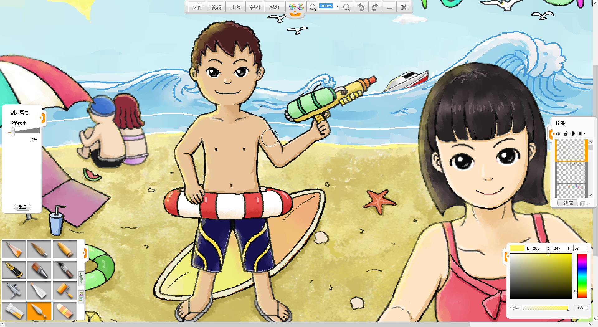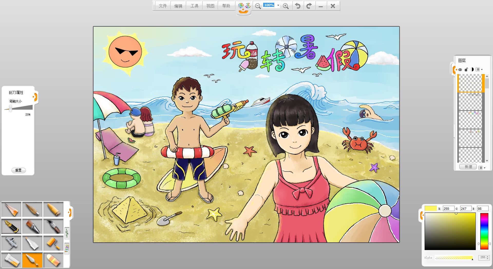 26.一幅“玩轉(zhuǎn)暑假”的作品創(chuàng)作完成了,如果有時(shí)間還可以給人物更換不同的發(fā)型和服裝。