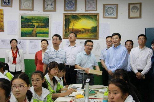 ▲中央宣傳部副部長、中央網信辦主任莊榮文參觀吉星未來美術教室