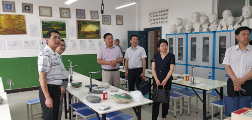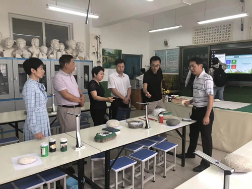 ▲中央電化教育館黨委副書記李萍參觀未來美術教室