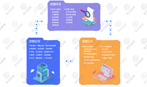 通過教學(xué)質(zhì)量監(jiān)測與評價系統(tǒng),建立動態(tài)大數(shù)據(jù)中心,不斷自動智能采集學(xué)校統(tǒng)考、區(qū)域聯(lián)考、模擬考等數(shù)據(jù),智能化生成專業(yè)分析報(bào)告,為教育部門、學(xué)校、教師提供管理、教學(xué)決策依據(jù),落實(shí)國家政策要求,助推信息化教育與智慧教育課堂的建設(shè)。
