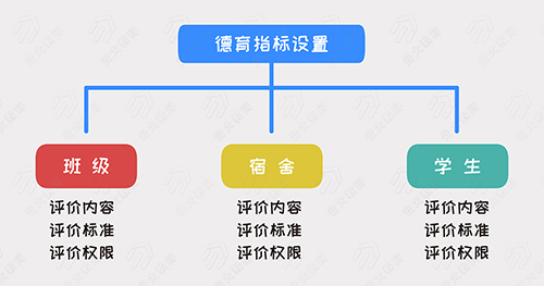 第一,支持德育管理指標設置。不同的學校在辦學上擁有自身獨特的理念,對德育工作的評價指標也不盡相同,系統(tǒng)滿足學校在德育工作中評價內(nèi)容、評價標準、評價權限等的靈活設置,使不同教師及部門間協(xié)同開展德育工作,有效保障評價機制的順利運行。