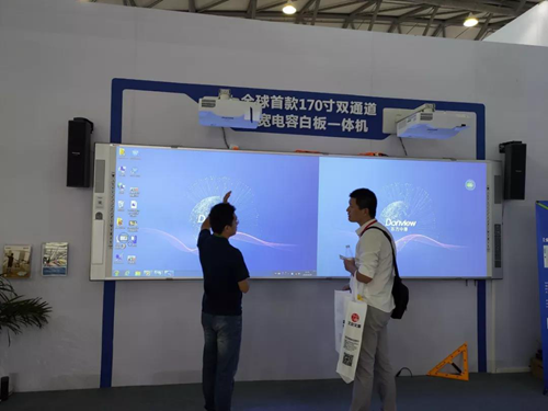 此次展會(huì)東方中原帶來了全球首款170寸雙通道超寬電容白板一體機(jī),它目前是全球首款最大的雙通道電容白板一體機(jī)解決方案。