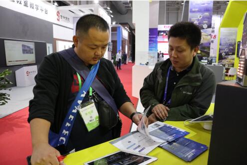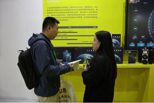 ↑客戶向九天未來工作人員咨詢“北斗杯”全國青少年科技創(chuàng)新大賽的相關(guān)案例。