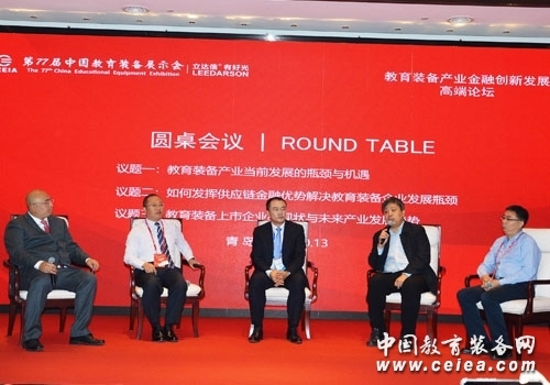 論壇最后開(kāi)展了圓桌會(huì)議,參會(huì)嘉賓北京市教育技術(shù)設(shè)備中心副主任柴旭津,天津市普通教育技術(shù)裝備管理中心副主任王戈、視源股份未來(lái)教育集團(tuán)總裁黃明寒以及四川長(zhǎng)虹教育科技有限公司總經(jīng)理黃煥就教育裝備產(chǎn)業(yè)當(dāng)前發(fā)展的瓶頸與機(jī)遇,如何發(fā)揮供應(yīng)鏈金融優(yōu)勢(shì)解決教育裝備企業(yè)發(fā)展瓶頸,教育裝備上市企業(yè)的現(xiàn)狀與未來(lái)產(chǎn)業(yè)發(fā)展趨勢(shì)等問(wèn)題進(jìn)行了深入的交流和探討。