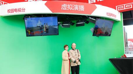 為慶祝祖國七十年華誕,文香虛擬演播體驗(yàn)區(qū)專門準(zhǔn)備了70華誕系列主題,觀眾可以在綠箱前,便實(shí)現(xiàn)出現(xiàn)在航母上的效果。觀眾可以直接掃碼,下載專屬自己的70年主題照片,現(xiàn)場觀眾絡(luò)繹不絕。