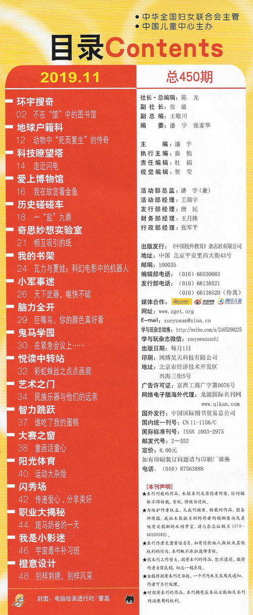 《學(xué)與玩》雜志,由中國(guó)兒童中心主辦,是2017年國(guó)家新聞出版廣電總局向全國(guó)少年兒童推薦的優(yōu)秀少兒期刊,同時(shí)也是國(guó)家新聞出版廣電總局“農(nóng)家書屋”工程重點(diǎn)推薦期刊。不僅如此,《學(xué)與玩》雜志還是“北京市綠色印刷工程——優(yōu)秀青少年讀物綠色印刷示范項(xiàng)目”。