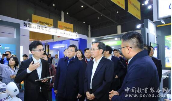 中國(guó)教育裝備行業(yè)協(xié)會(huì)會(huì)長(zhǎng)王富,四川省委教育工委書記,教育廳黨組書記、廳長(zhǎng)李江,四川省教育廳副廳長(zhǎng)崔昌宏等領(lǐng)導(dǎo)來到科大訊飛所在的展位巡視,詳細(xì)了解大數(shù)據(jù)、人工智能等技術(shù)在教育領(lǐng)域的最新應(yīng)用成果。